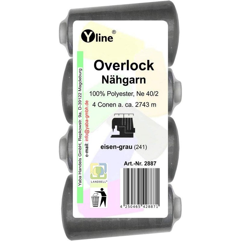 Pack of 4 Overlock Sewing Thread, Iron Grey, 2743 m, NE 40/2, 100% Polyester, Sewing Thread, Sewing Machine Yarn, 2887