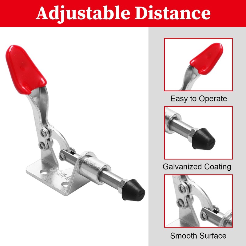 - Durable material: the push-pull toggle clamp is made of cold-rolled carbon steel with a zinc coating, which makes it high-quality, extremely stable and efficient, especially due to its side thrust protection. This small toggle clamp guarantees a long service life.