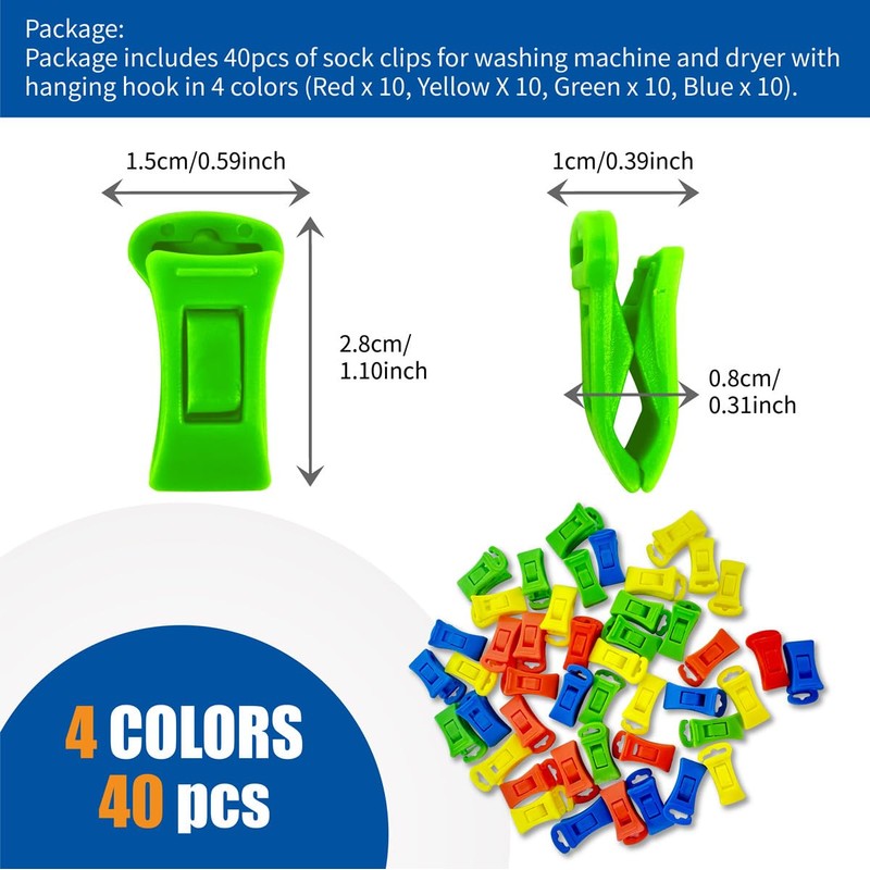 - Convenience: you will receive 40 sock clips, each with a size of 3 x 1.5 x 1.5 cm, small compact and lightweight design, whether you are traveling or in dormitories or indoors or outdoors, you can hang socks on the clothesline.