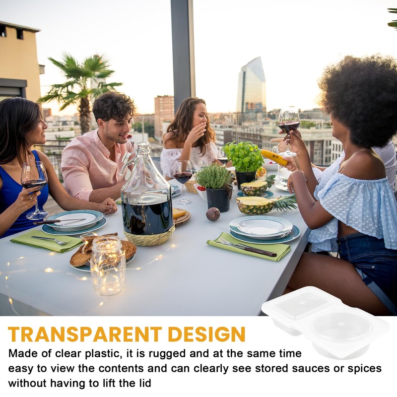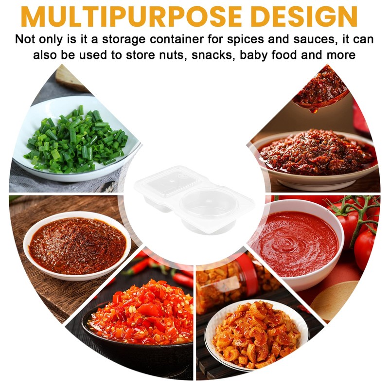 - 【Two-chamber spice container】: the two-chamber spice container features a 2-in-1 design. Each food container is equipped with 2 compartments with two capacities of 60 ml and 70 ml, which is convenient for storing a variety of different sauces, spices or side dishes.
