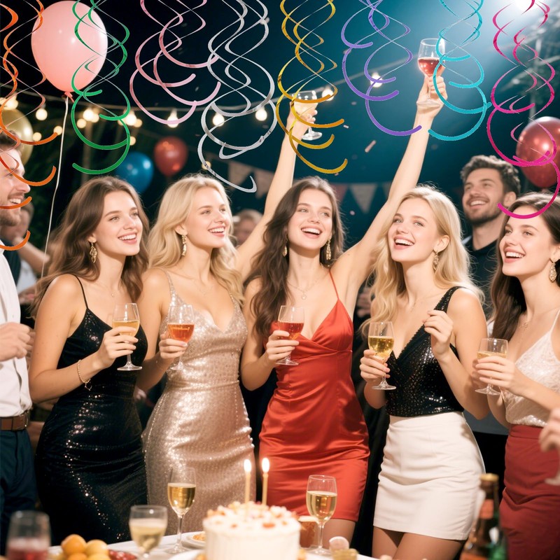 - Create atmosphere: multi-coloured sparkling hanging spirals Grlande streamers are bright in color, elegant and sparkling, so they can catch the light and easily create a cheerful atmosphere for your party