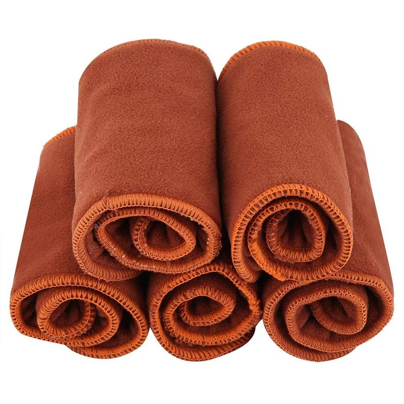 Pack of 5 Baby Nappy Liners, Brown, Soft, Washable Cloth Nappy, 4 Layers, Reusable Bamboo Insert Liner, Nappy Pad for Children