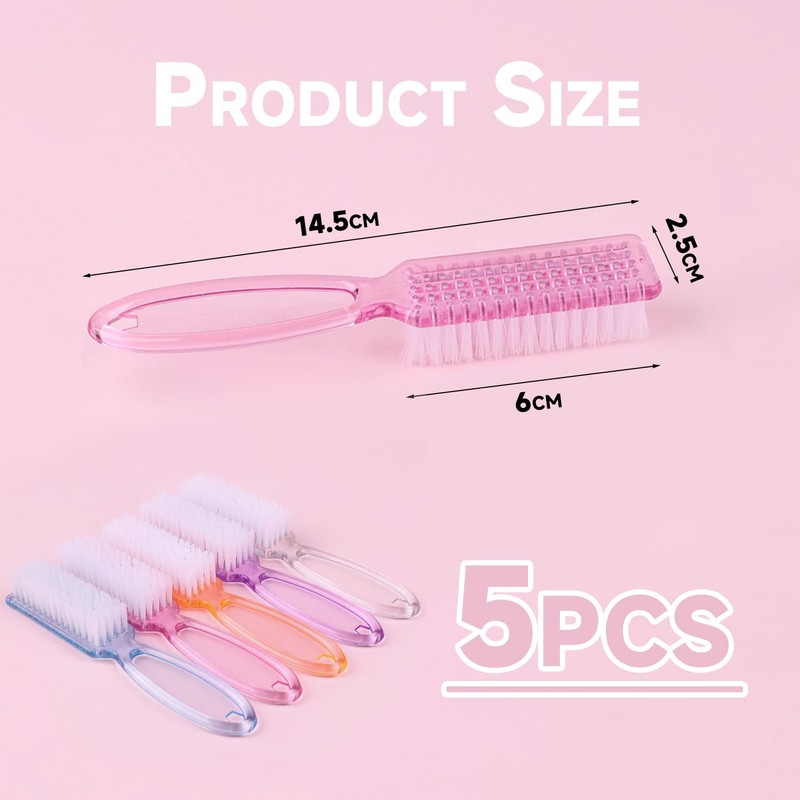 - Product contents: you will receive 5 long-handled nail brushes, 1 piece of each colour (pink, purple, blue, transparent, orange), size 14.5 x 2.5 cm, suitable for hand and toenail cleaning.