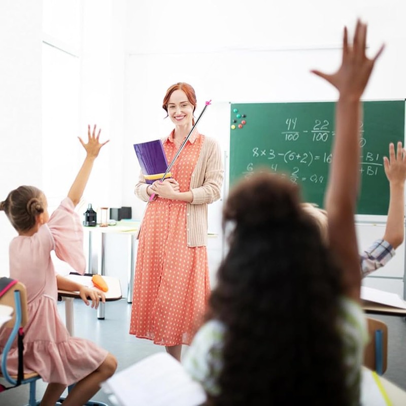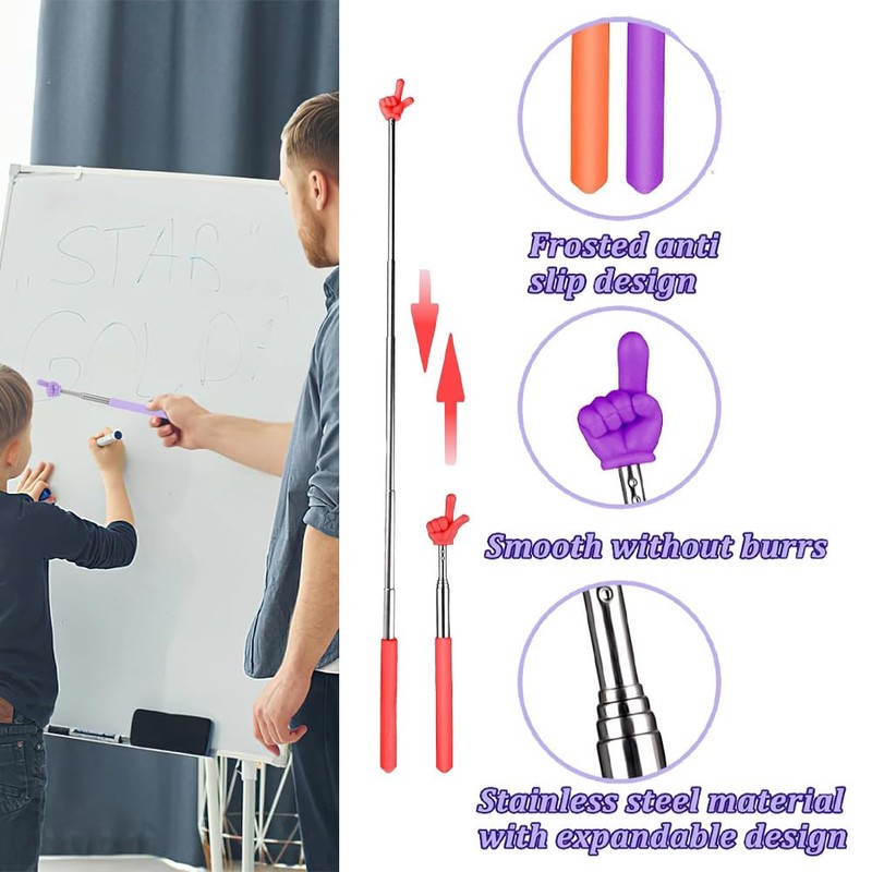 - High Quality Material The teacher pointer expansion groove is made of metal and reinforced to make the pointer more stable. Handle and upper finger are made of high quality plastic, smooth and round, without burrs and not easily deformable.
