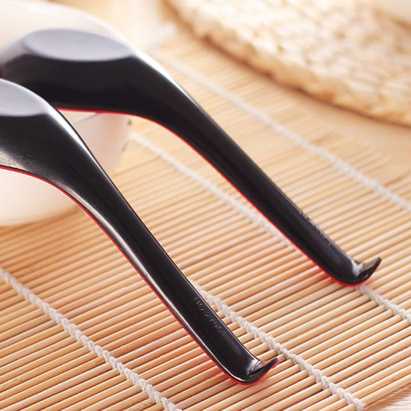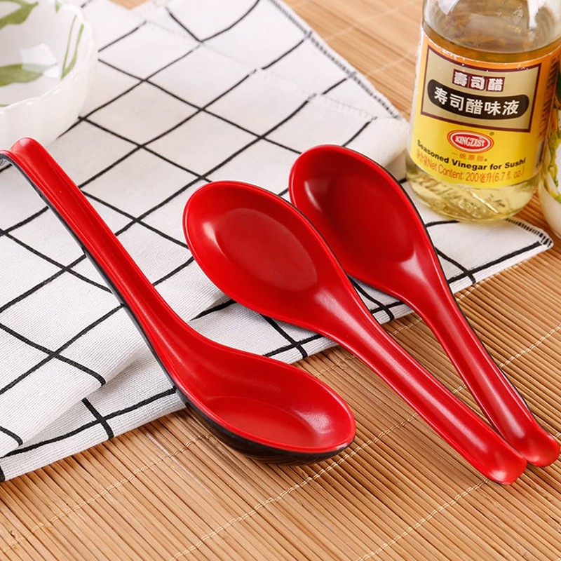 Pack of 5 Soup Spoons Chinese Style with Hooks Plastic Noodle Soup Spoon Long Handle Serving Spoon Non-Toxic Easy Care for Home, Restaurants, Offices, Buffets, Canteens, Hotels etc. Red + Black