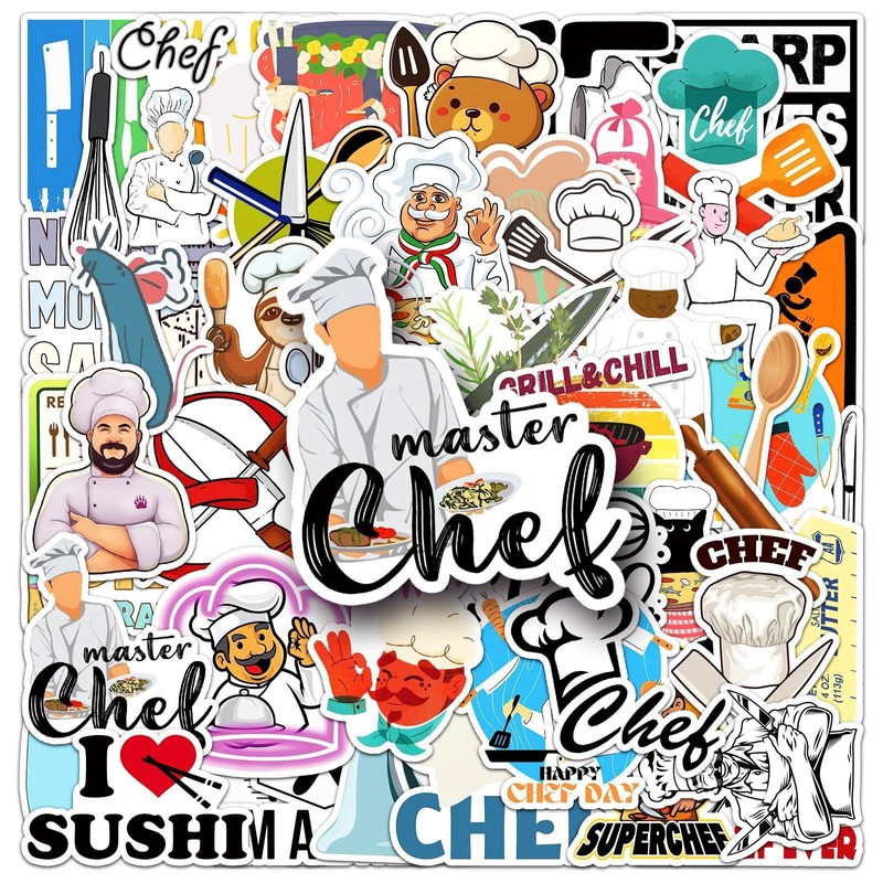 Pack of 50 Chef Stickers for Bumper, Motorcycle, Fridge, Laptop, Car, Scrapbooking, Luggage, Cute Chef Career Waterproof Stickers, Adult Girls Gift, Aesthetic Graffiti Stickers