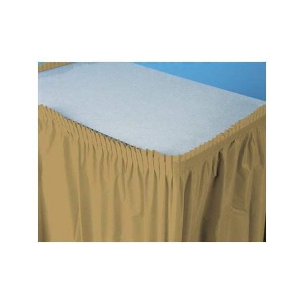 Pack of 6 Glittering Gold Pleated Disposable Plastic Picnic Party Table Skirts 14'