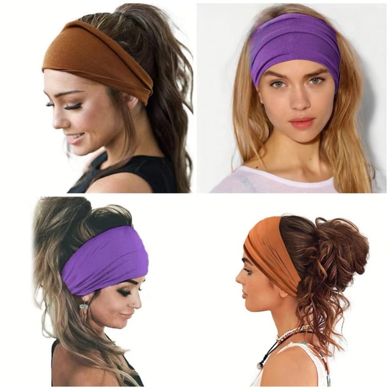 Pack of 6 Headbands for Women Wide Knotted Turban Bandana Boho Headscarves Wraps Yoga Hair Bands Fabric Elastic Headband Sports Running Headscarves (Purple Hairband)