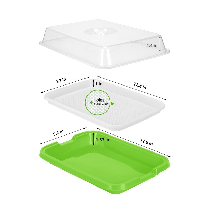 Our seed sprouter trays make seeding a breeze. The built-in mesh layer ensures even germination and spacing, so you won't have overcrowding in your microgreens growing trays.Our see-through lids are a big help. They boost light transmission for efficient photosynthesis and keep your greens safe from contaminants, setting the stage for quick germination.