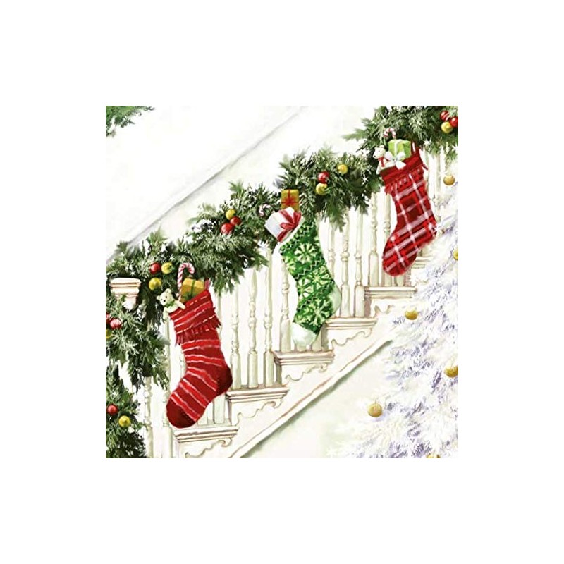 Pack of 60 Christmas Stockings on Staircase 3-Ply Lunch Napkins 6.5"