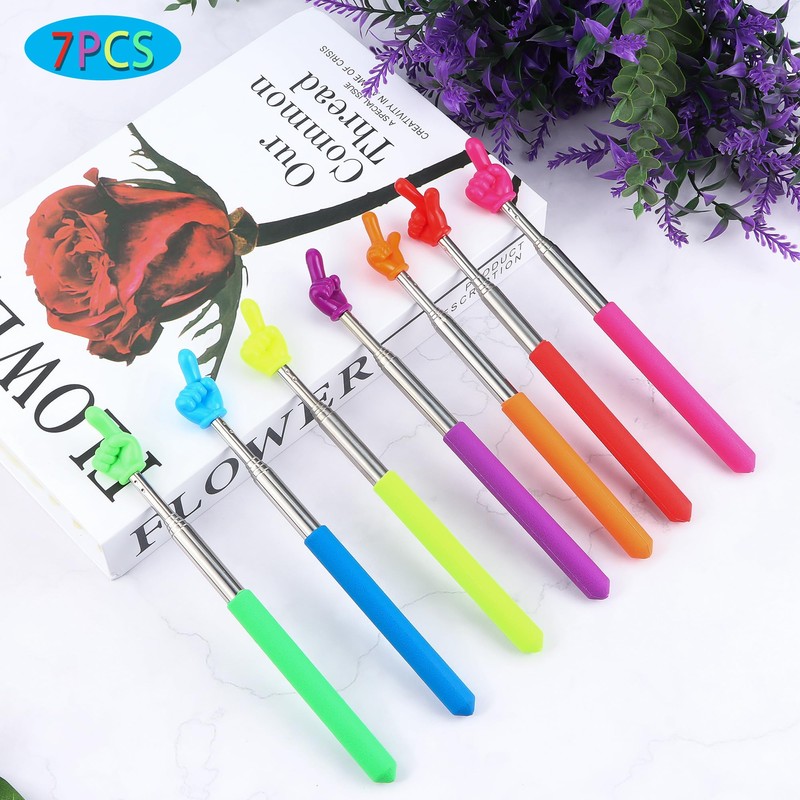 Pack of 7 Extendable Pointer Sticks, Retractable Classroom Pointers, Mini Handheld Teaching Pen, Finger Pointer Pointer Stainless Steel Children Extendable Pointer Stick for Classroom, Personal