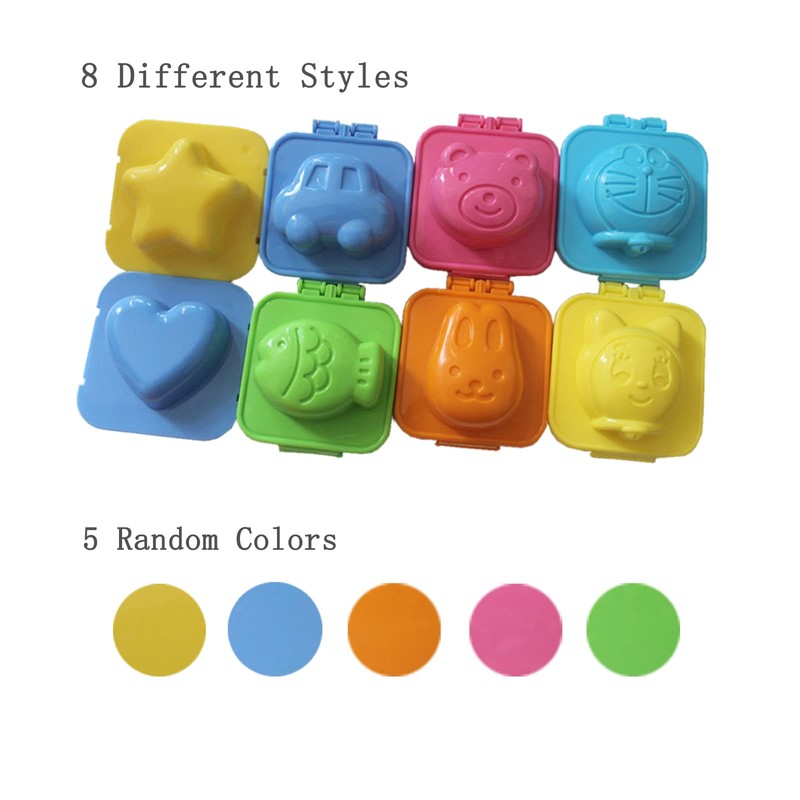 Pack of 8 Boiled Egg Moulds, Onigiri Mould, Sushi Rice Mould, 8 Different Shapes, Mould Cutter for Home Kitchen Tool DIY Cupcakes for Baking (Random Colour)