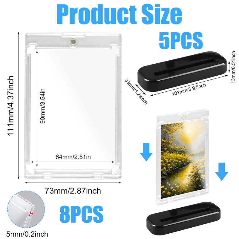 - Appropriate quantity: you will receive 8 35pt magnetic card holders and 8 sockets. Each 35pt trading card sleeve has outer dimensions of 11.1 x 7.3 cm / 4.37 x 2.87 inches and inner dimensions of 6.4 x 9 cm / 2.51 x 3.54 inches, making it perfect for standard or smaller trading cards.