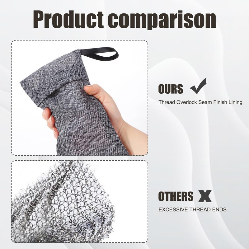 - DEEP CLEANSING Use our soap net to cleanse your body while enjoying a gentle yet effective exfoliating process. This soap bag can remove ageing cuticles and make the skin look smoother and more delicate.