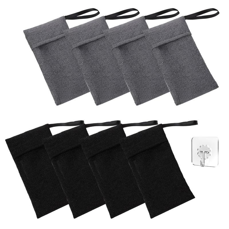 - Package list: you will receive 8 soap bags for solid soap, 4 black, 4 grey, and a hook for easy hanging, which is very convenient to carry no matter at home or when travelling. Thanks to the compact and lightweight design, you can enjoy the clean and refreshing taste of soap bags anytime and anywhere.