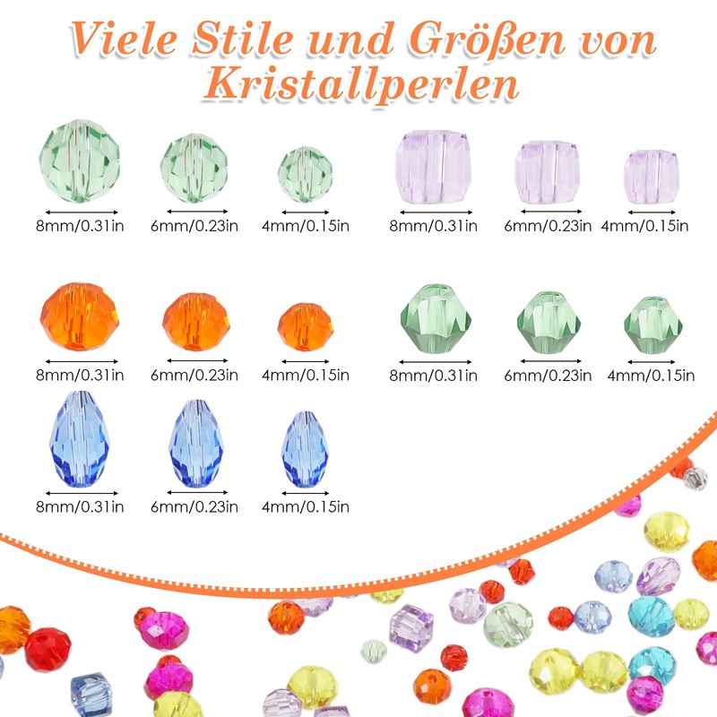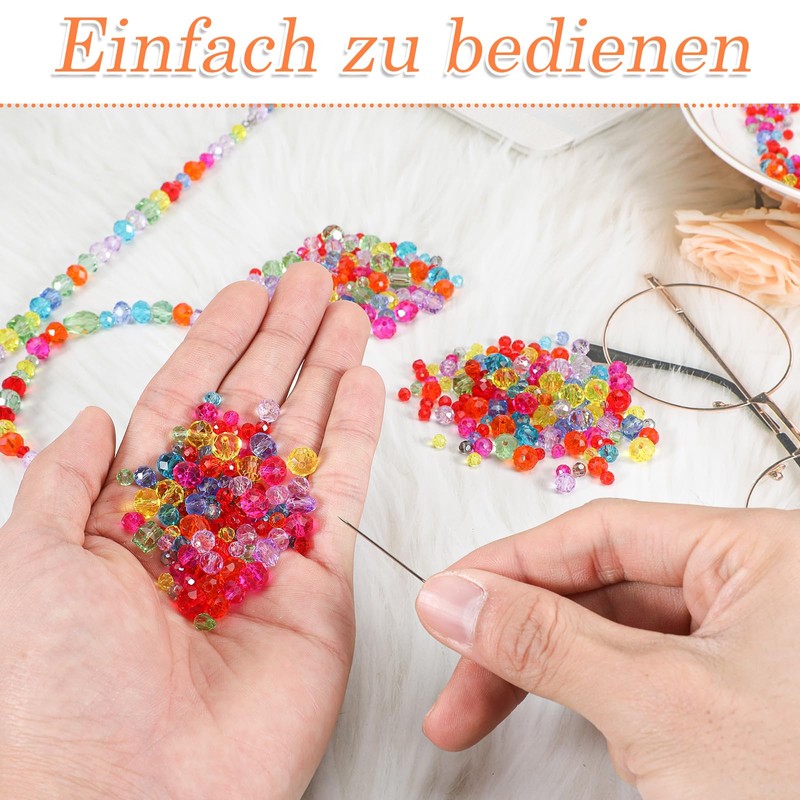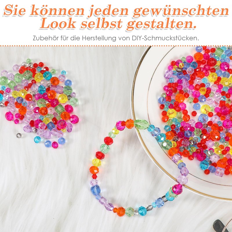 Pack of 800 Crystal Beads, Mixed Colours, Colourful Faceted Glass Beads, Crystal Glass Beads Kit with 4/6/8 mm Glitter Beads for Threading, DIY Beads