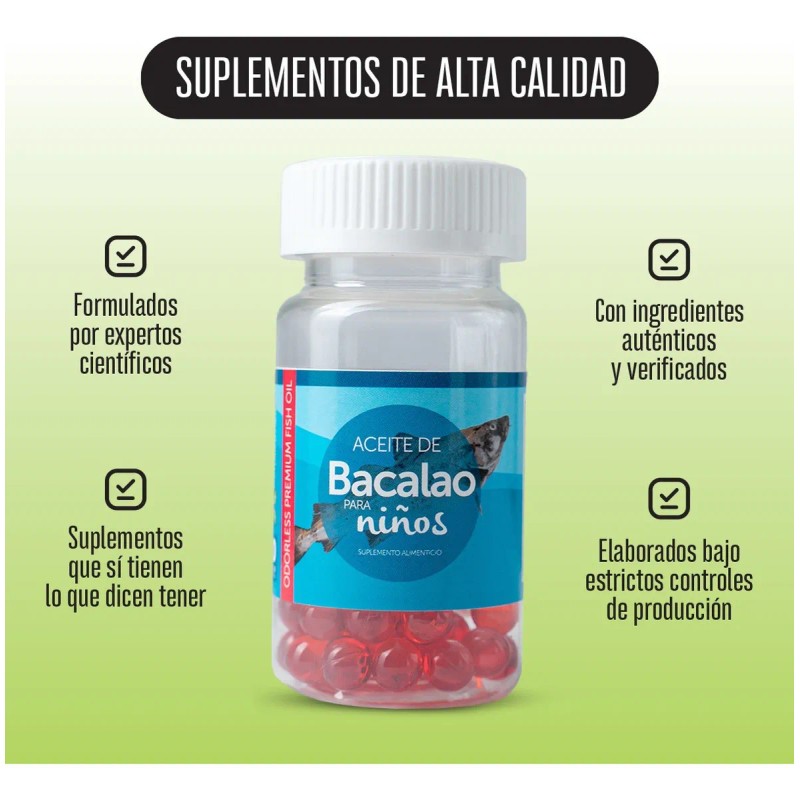 🌟 ⭐ Pack para Niños | 1 DHA Kids Cápsulas + 1 Bacalao Kids Cápsulas | Apoya el Desarrollo Cognitivo | Favorece la Salud Visual | Refuerza el Sistema Inmunológico | Nutrición Esencial para el Crecimiento ⭐ 🌟