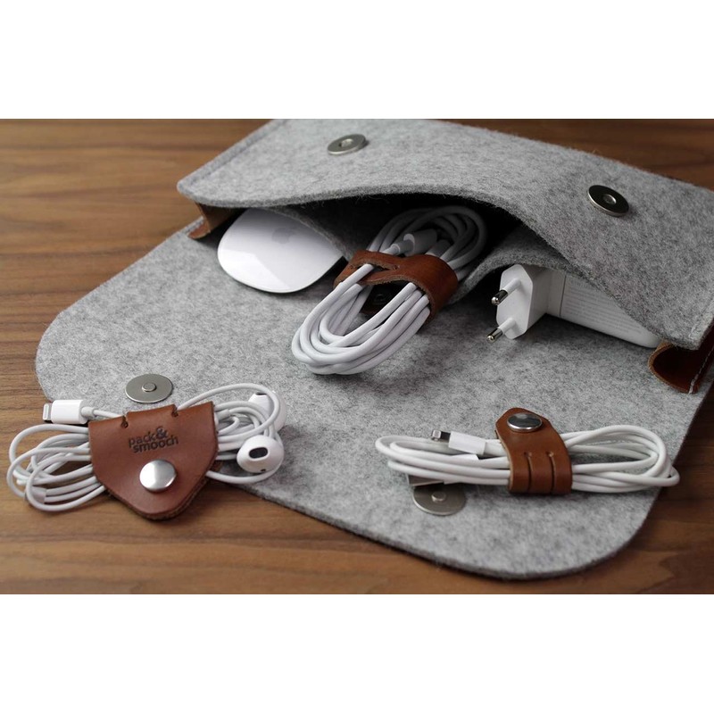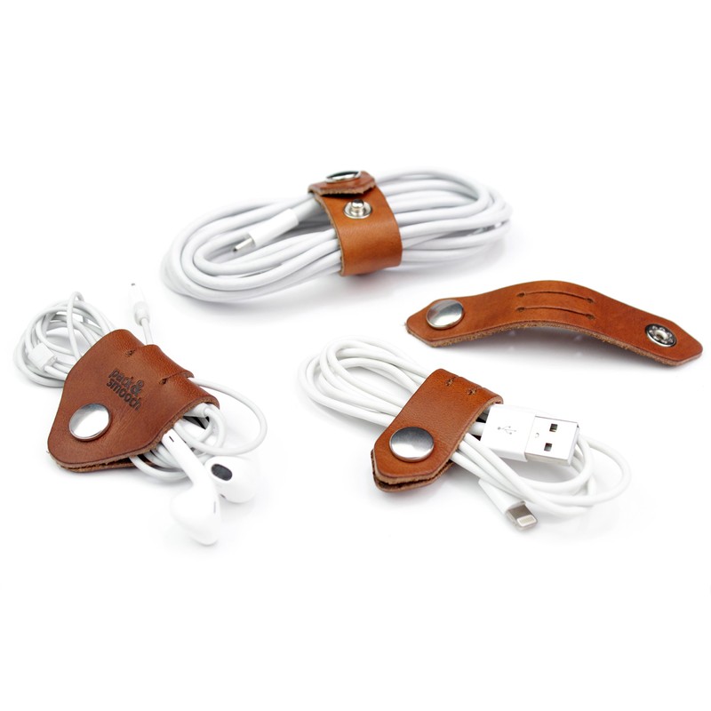 Pack & Smooch Cable Organiser Set, Cable Holder, Cable Ties, 100% Vegetable Tanned Leather, Made in Germany, Light Brown