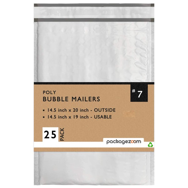 PackageZoom 25 Pcs Poly Bubble Mailers 14.5x20 Padded Envelopes #7 Shipping Envelopes 2.5 Mil