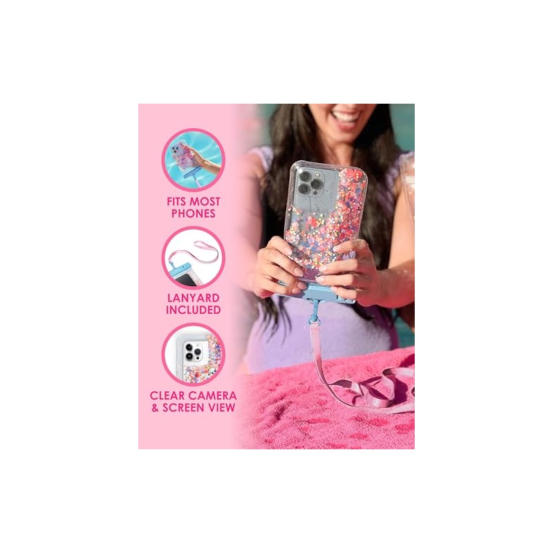 - QUALITY MATERIALS. These durable, waterproof phone pouches are made of high-quality confetti packed vinyl for longevity! Keep your phone secure while near the water with the attached lanyard.