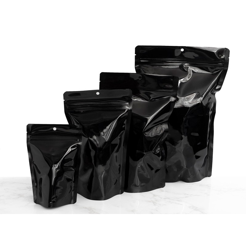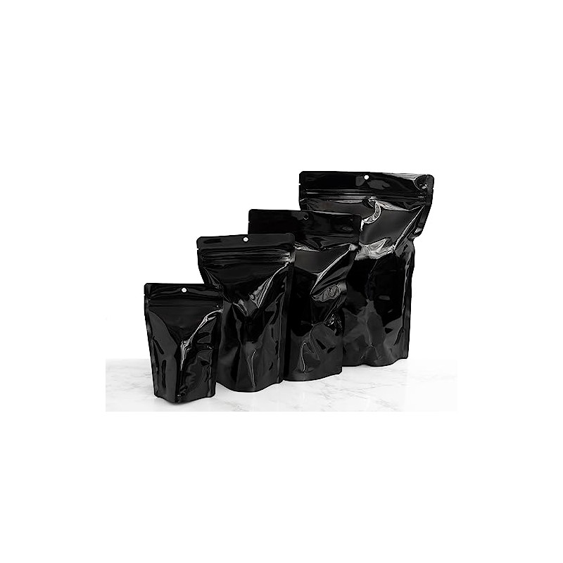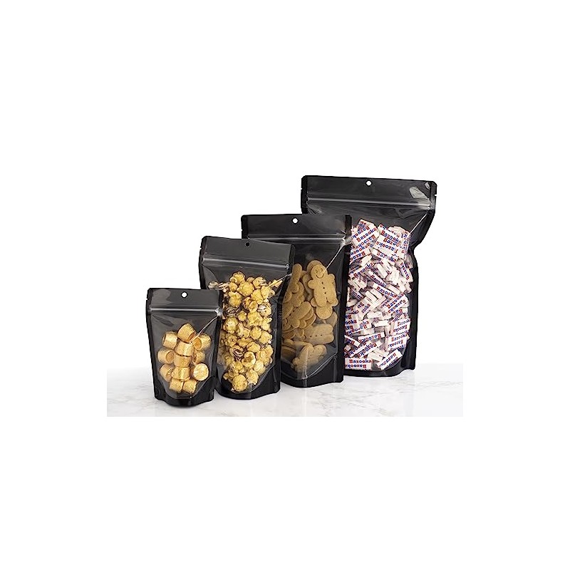 PackFreshUSA: 5 Mil Black & Clear Stand-Up Pouches - Professional Flexible Packaging - Resealable - Seal-Top - Heat-Sealable - Hang Hole - Tear Notch - Large 6x9.5x3.5-100 Pack