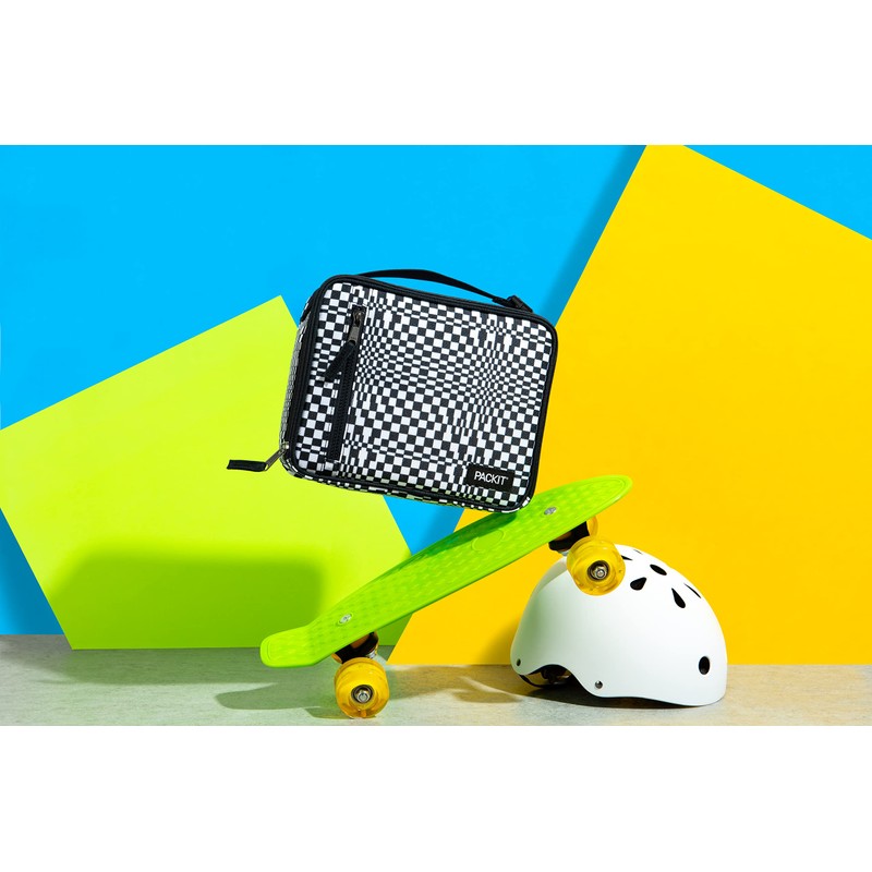 PackIt - Fiambrera clásica congelable, hecha con tecnología EcoFreeze plegable, reutilizable, cierre de cierre con bolsillo frontal con cierre y asa de hebilla, perfecta para almuerzos escolares