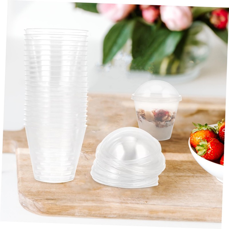 PACKOVE 20Sets Disposable Dessert Cups with Lids Mousse and Jelly Cups for Parties Fruit Salads and Yogurt Treats Convenient and Durable Dessert Containers