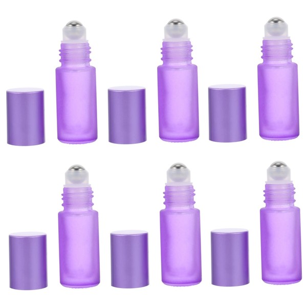 PACKOVE 6Pcs Portable Frosted Glass Roller Bottles Refillable Perfume Containers for Essential Oils Aromatherapy Cosmetics Durable Travel Friendly