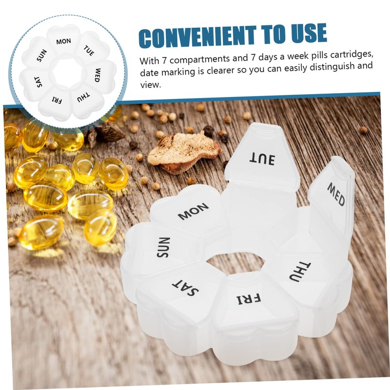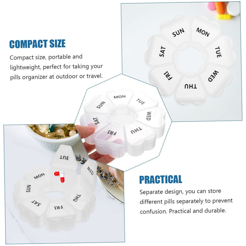 PACKOVE Weekly Medicine Case with Flower Shaped Compartments Transparent Mini Pill Organizer Box for Daily Storage and Travel Portable Weekly Pill Container with Lid