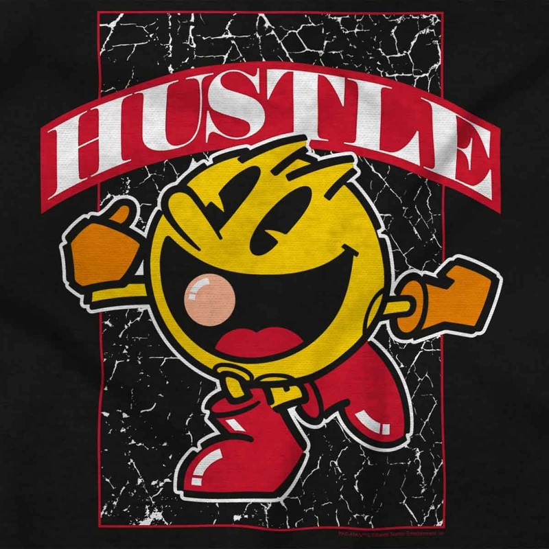 Pacman Video Arcade Game Hustle Womens Top Junior Graphic Tee Black