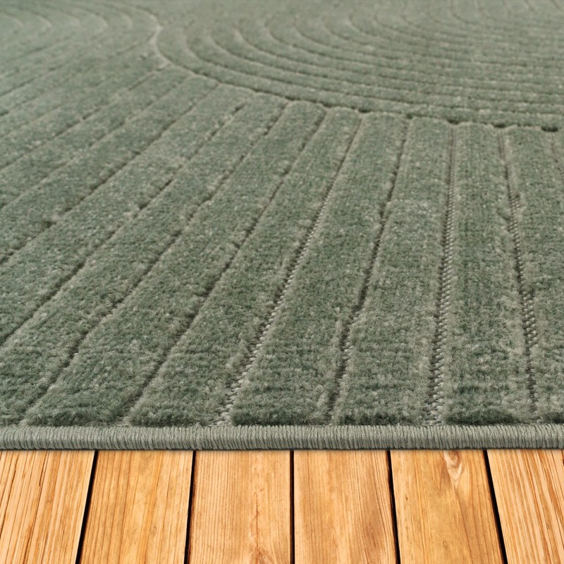 Paco Home Modern Area Rug with Raised Curved Line Pattern – Minimalist Design in Green, Size: 2'8" x 4'11"