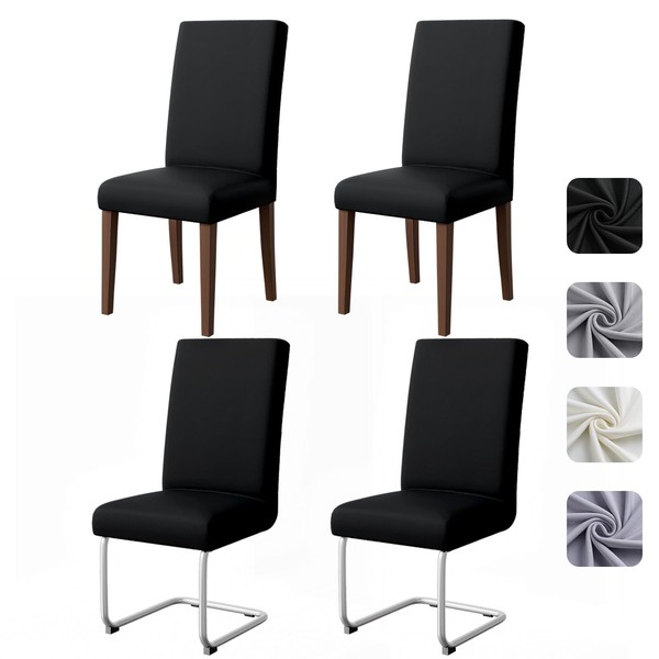 Pacok Dining Room Chair Covers Set of 4,Stretch Dining Chair Slipcovers Elastic Removable Washable Seat Covers for Hotel Kitchen Banquet Ceremony(Black)