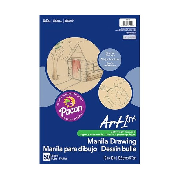Pacon Art1st Drawing Paper, Manila, Standard Weight, 12" x 18", 50 Sheets