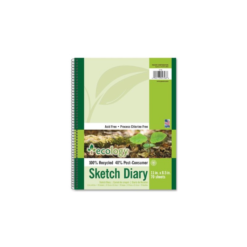 Pacon Ecology Sketch Diary, 60 lb Text Paper Stock, Green Cover, (70) 11 x 8.5 Sheets