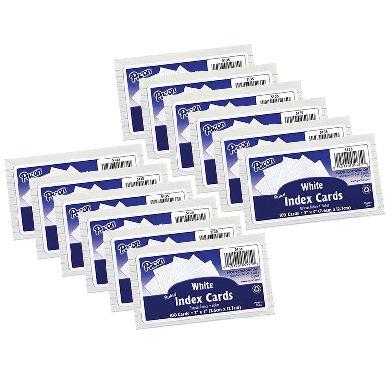 Pacon® Index Cards, White, Ruled, 1/4" Ruled 3" x 5", 100 Per Pack, 12 Packs