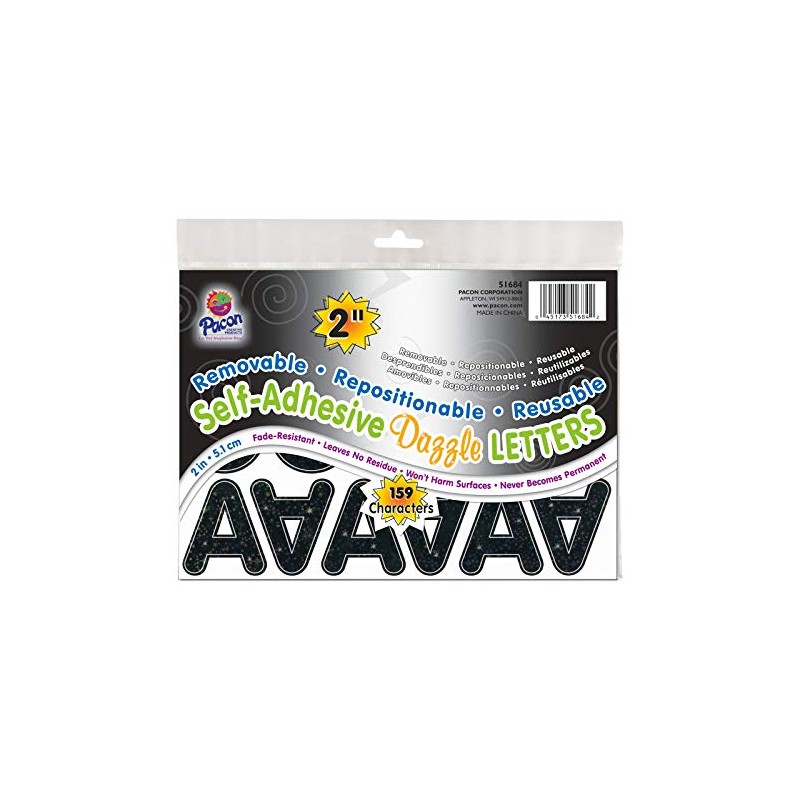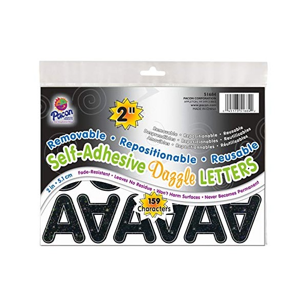 PACON Self-Adhesive Letters, Black Dazzle, Puffy Font, 2", 159 Characters