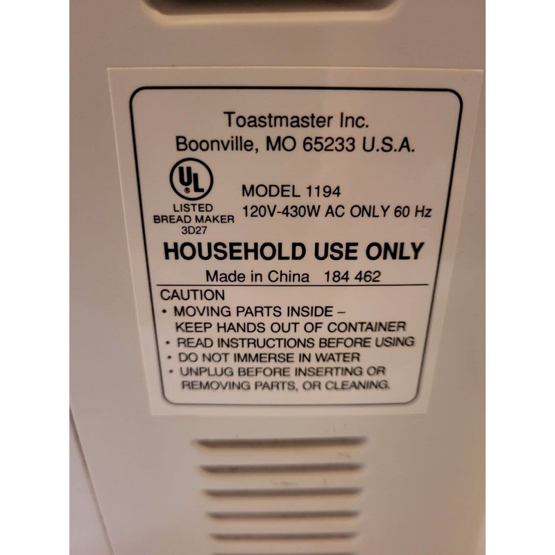 Paddle for Toastmaster Bread Maker Model 1194 only