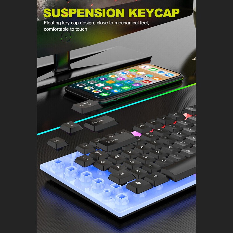 🌈PC gaming keyboard and gaming mouse combo: Includes RGB backlit PC gaming keyboard and RGB backlit gaming mouse. All-