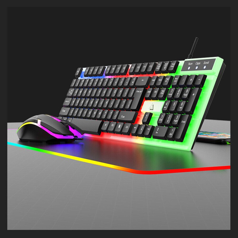 Specification:   ▪️  Type: Game    ▪️  Model: mechanical sense Led light backlight    ▪️  Keyboard layout: QWERTY (standard)   ▪️  Connection: Wired    ▪️  Keyboard key number: 104 keys   ▪️  Features: light, plug-and-play, portable, waterproof    ▪️  Keyboard language: English   ▪️  Keyboard interface: USB interface   ▪️  Mouse interface: USB interface   ▪️  Operating mode: optical   ▪️  Optical resolution: 1000dpi   ▪️  Whether to support plug-and-play: support   ▪️  Cable length 1.45 (m)   ▪️  Product weight: 613g (including packaging) Package includes: 1 x Mouse 1 x Keyboard
