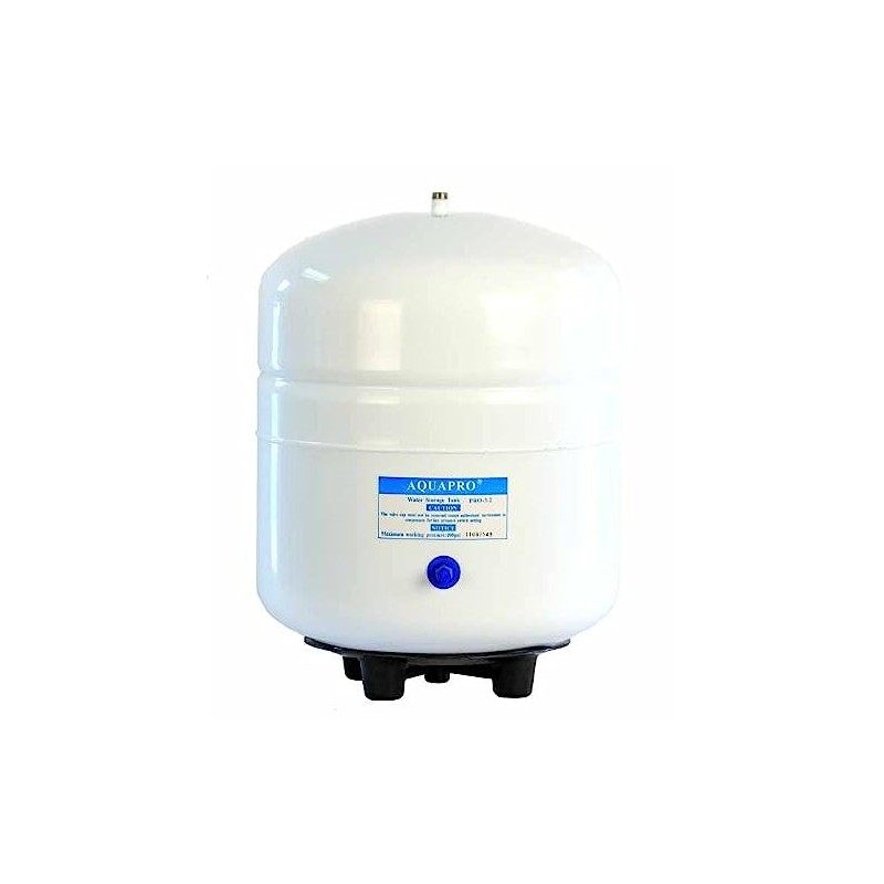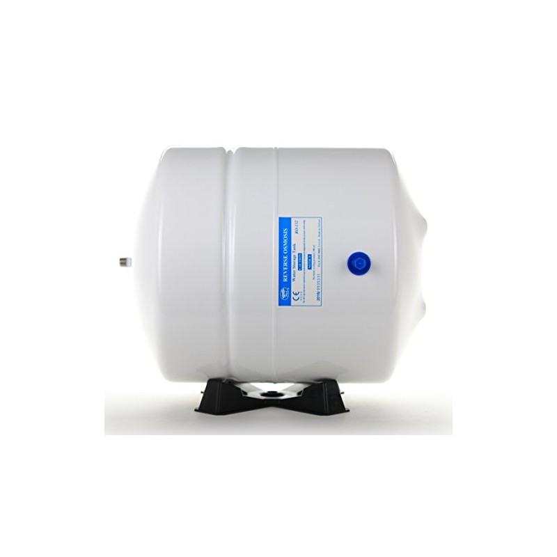 This PAE RO-132 tank is the best tank on the market for Reverse osmosis system. It is used by many major RO manufacturers including Watts. The dimension is 9. 5" diameter and 15" height. White color, Steel tank with FDC approved Food grade bladder inside. Pre-charge with 5-7 psi of air pressure. When tank is full, it may reach 45 to 50 psi of pressure depending on your RO system. The water inlet is 1/4" MPT with stainless steel thread. It can be re- pressurize using an air pump through the air valve. The tank is 4 gallon tank and holds about 3. 2 gallons of water.