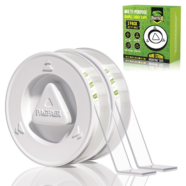 PAGFAER 2PCS Double Sided Tape Heavy Duty, Double Sided Mounting Tape, Heavy Duty Double Sided Tape for Walls Clear Picture Hanging Adhesive Strips(4M+25.4MM+2MM)