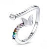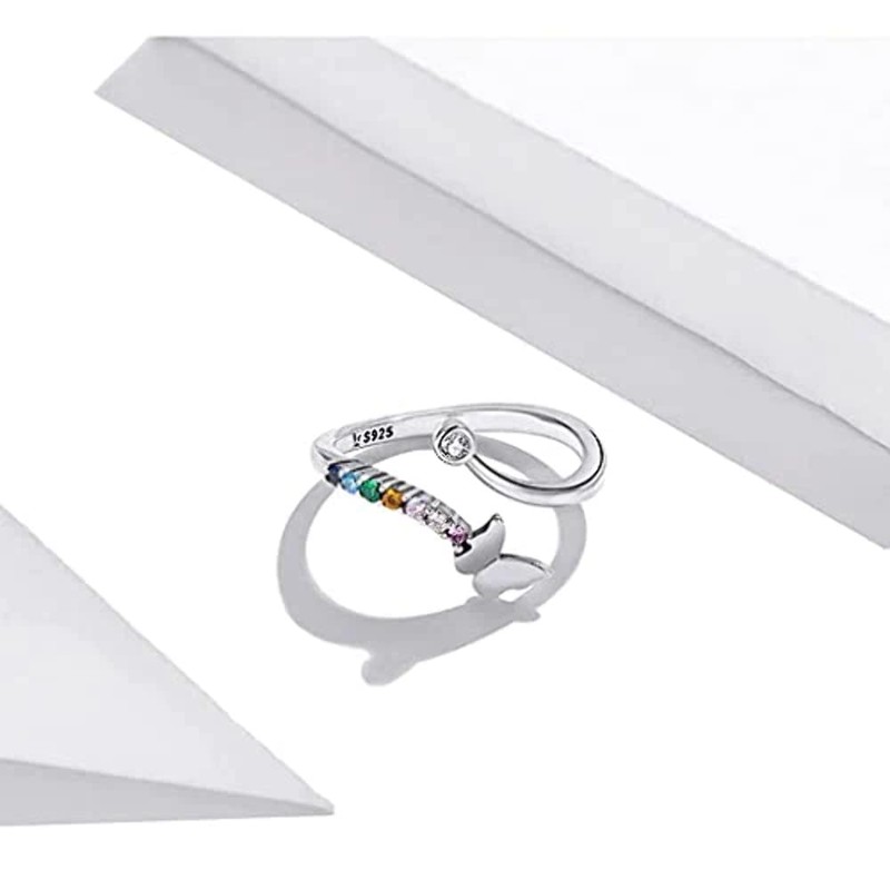 PAHALA 925 Strling Silver Rainbow Butterfly Ring Colorful Crystals Finger Weeding Party Ring