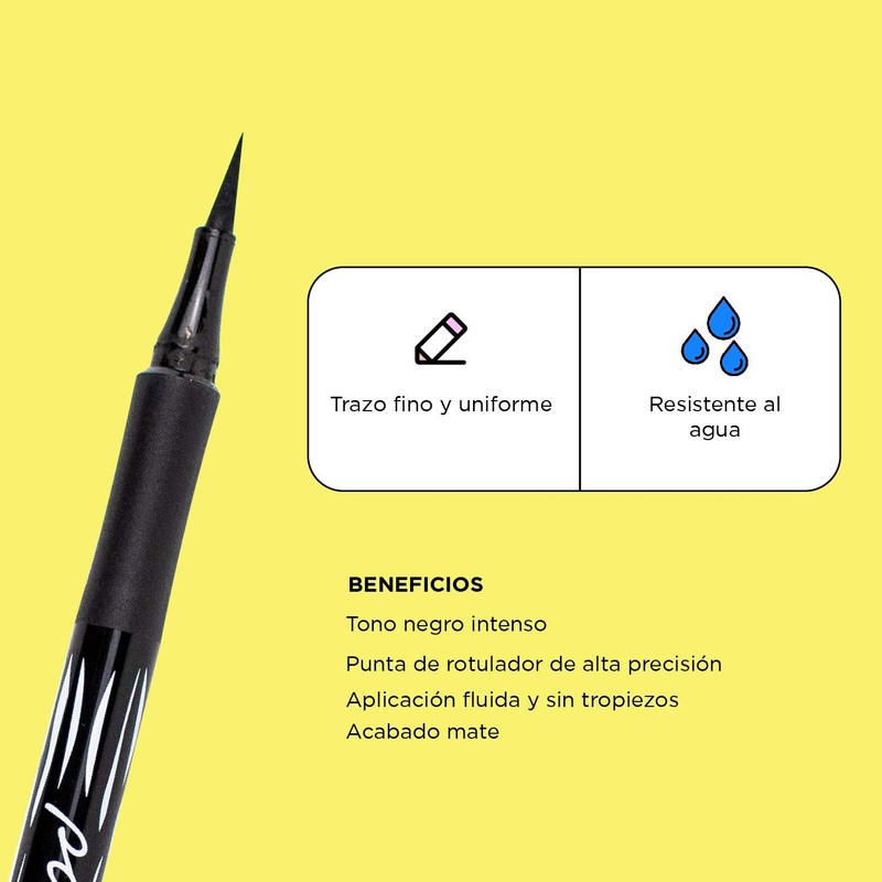 Su formula esta creada para hacer delineados nítidos, además de que gracias a su punta creas trazos más controlados gruesos y delgados.
