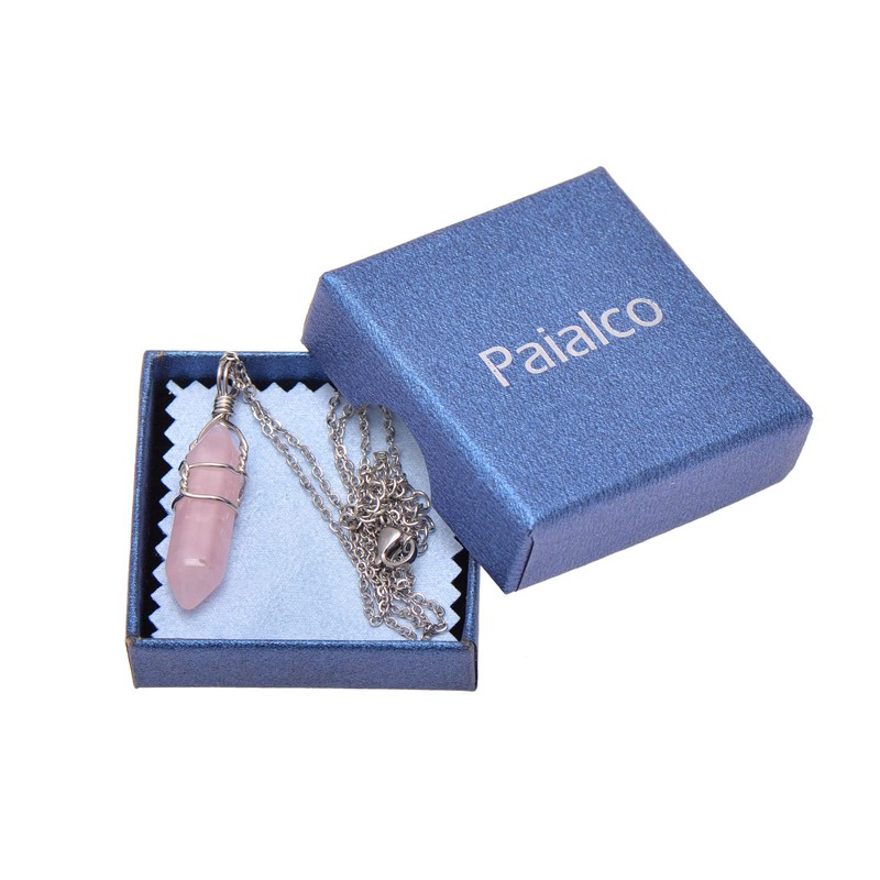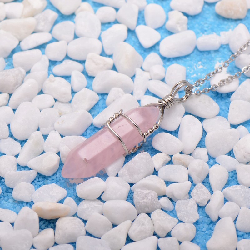 Paialco Hand Wired Natural Rose Quartz Crystal Point Healing Chakra Pendant Necklace
