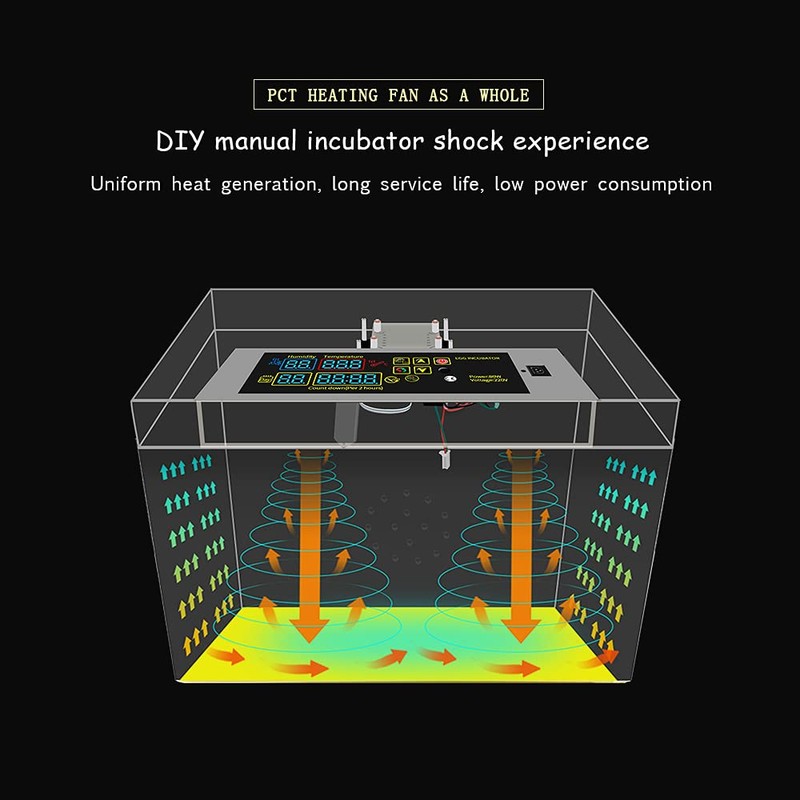 - Motor: mini lathe for eggs; Extractor fan: the exhaust fan uses evenly for a long and quiet incubation time