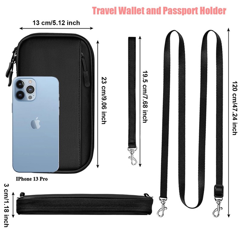 1. The Passport Wallet RFID NFC Blocking is Stylish and versatile. Made of nylon with zipped closure, durable and lightweight. Multi-Pocket,multiple layered internal pockets for convenient carring many items. The multifunctional women's travel bag provides ample storage space.