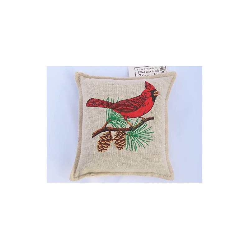Paine's Balsam Fir Filled Pillow Decorative Sachet 6''x6'' Screen Printed Cardinal Pine Needles Cones Branch (HS628)