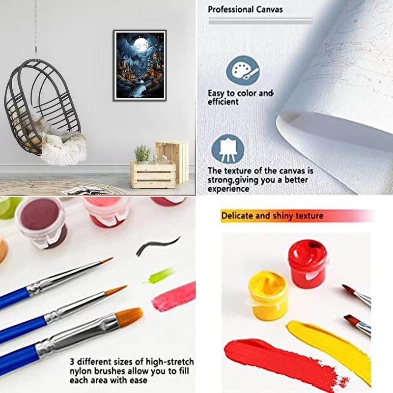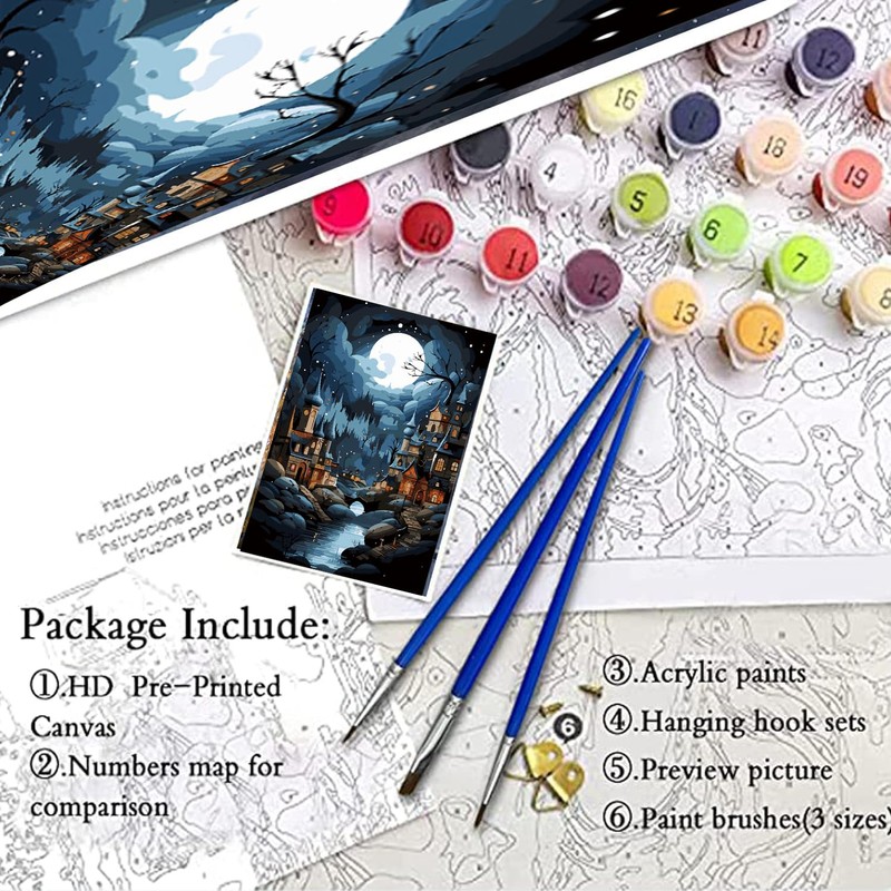 - 【High Quality Canvas and Acrylic Paint】Paint by numbers have High-quality canvas,the surface of the canvas is smooth and clean, the numbers are easy to identify, and the outline of the lines is clear.environmentally friendly acrylic paint, full bright color, easy to color, fast drying, strong coverage.