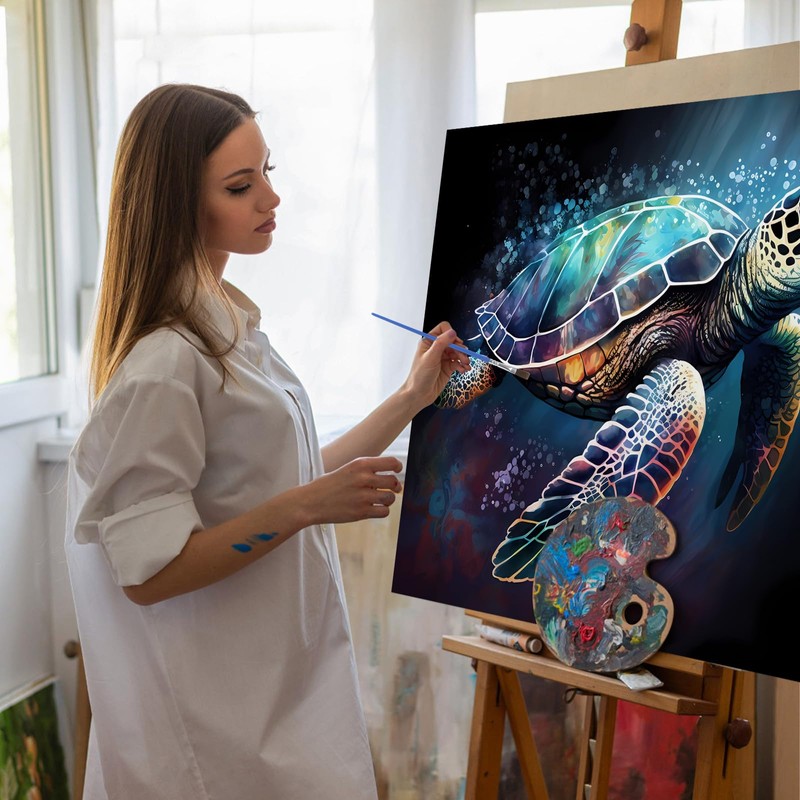 Paint by Numbers Adults Children, Paint by Numbers for Home Decoration, Paint by Numbers Turtle, Without Frame, Pictures Paint by Numbers, Adult Creative Set, DIY Set, Craft Set, Adults, Girls