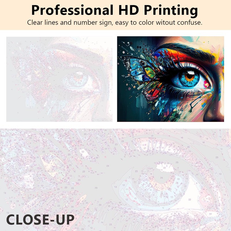 Paint by Numbers for Adults, Acrylic Eye Paint by Numbers Kits, Colourful Butterflies, Paint by Numbers for Adults, Beginners, Abstract Artwork, Wall Decoration, Oil Painting, 21 x 13.5 cm, Without